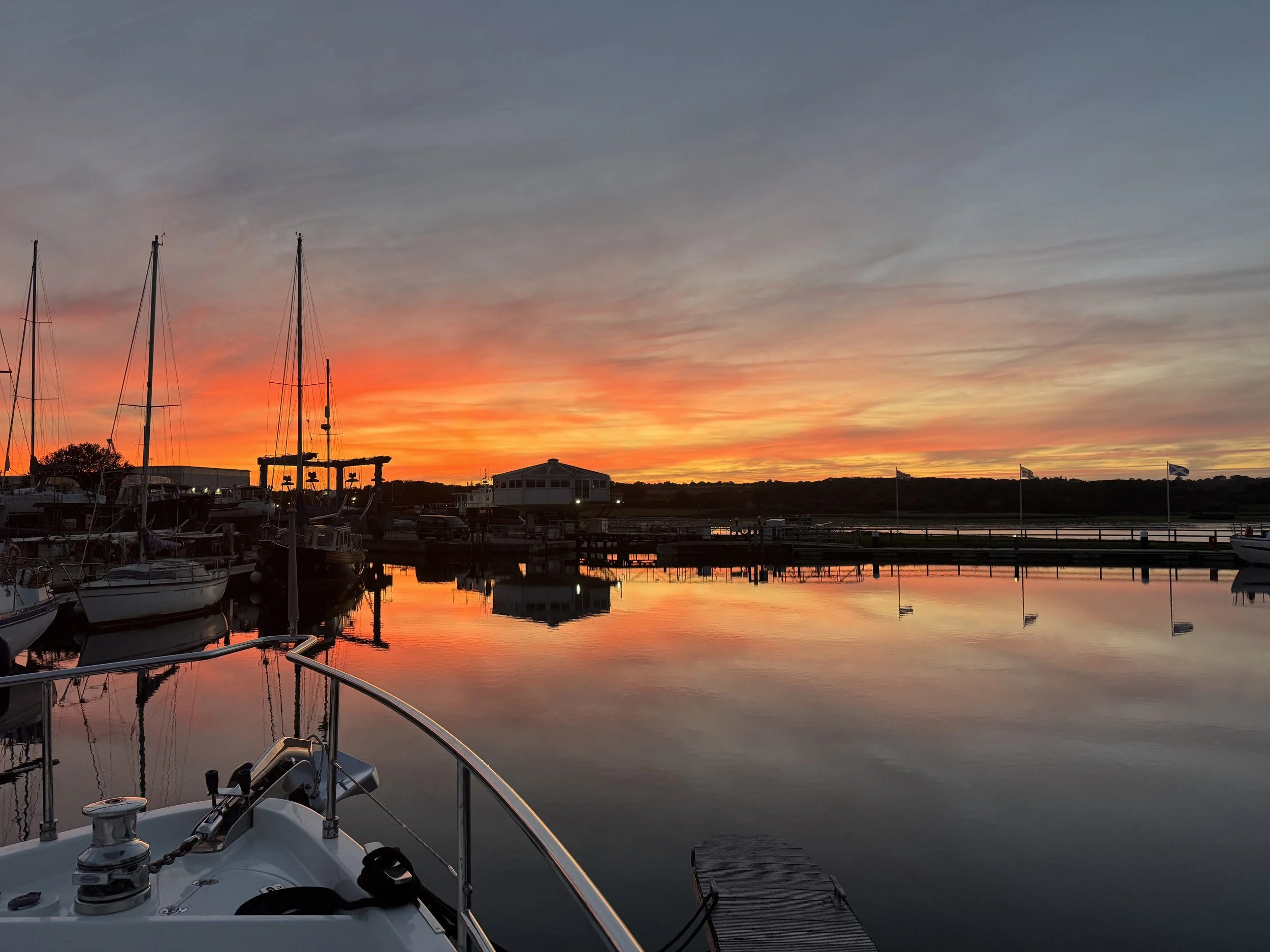 The next couple of days a major storm broke with torrential rain and raging wind which was recorded at over 40 knots out in the Solent. The wind was so strong I had trouble walking outside. We stayed busy indoors - preparing for lifting Meraki out of the water the following week. We started, of course, by making about a dozen lists: pickling the water-maker; inventorying and stowing all canned goods, emptying and defrosting the fridge and freezer; sorting through drawers, hatches, lockers; researching the process for winterizing the boat (we’d never done this); items to purchase for thorough winterizing; photographing warranty items for repair; work needing to contract out in our absence; packing for home.