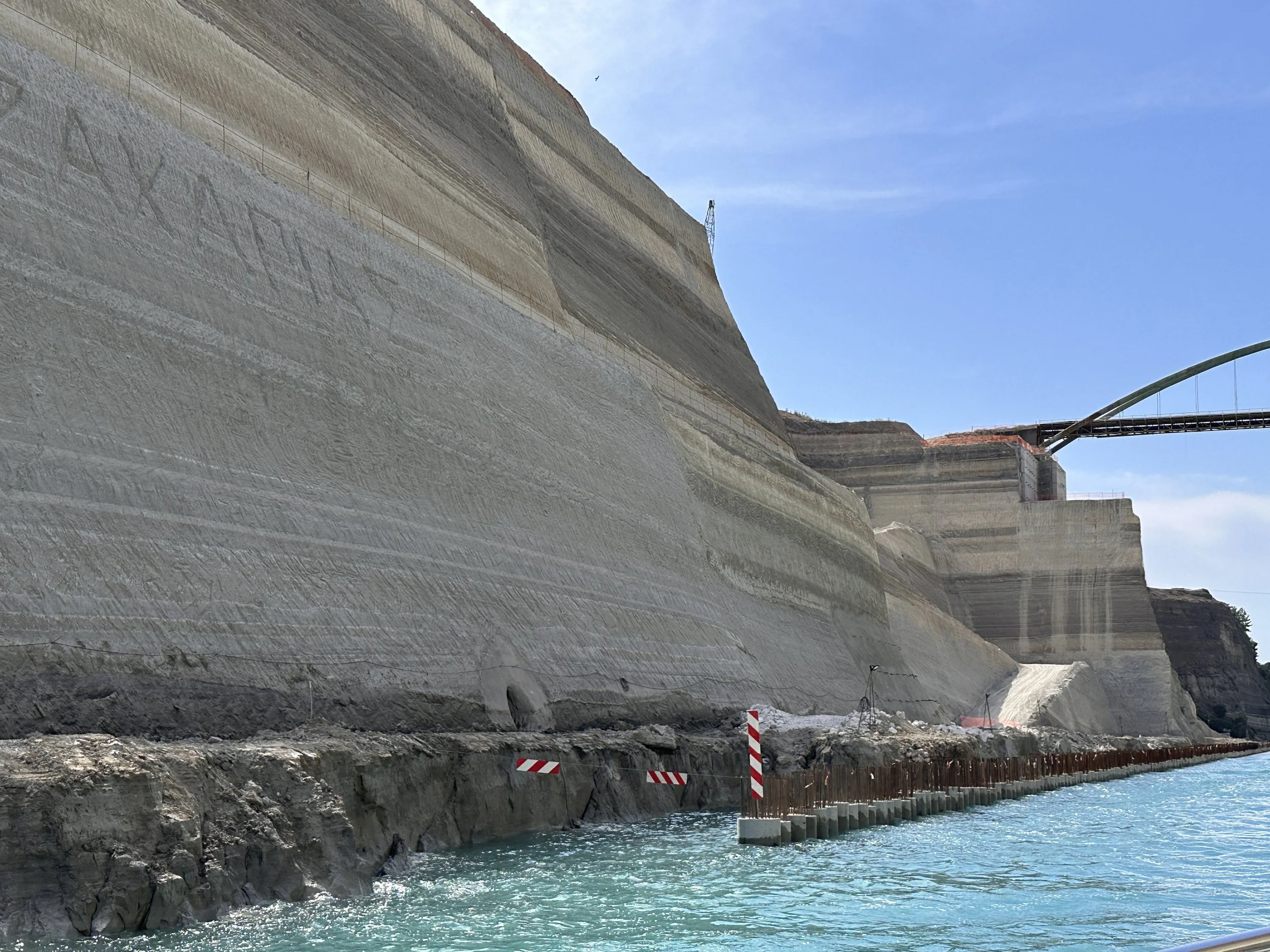 The following day we headed north. We passed through an area we’d visited in December and reminisced about our week with the kids over the holidays. We anchored that night in what I call “Christmas Cove” as we swam there in December when the water was quite brisk! The next day we continued north hoping to anchor near the Corinth Canal. We needed to figure out how to make the crossing and when we would be permitted. The canal was closed the beginning of 2021 after a landslide. It re-opened in June 2022 until October 2022. After further remediation, the canal again reopened on June 1st of this year.